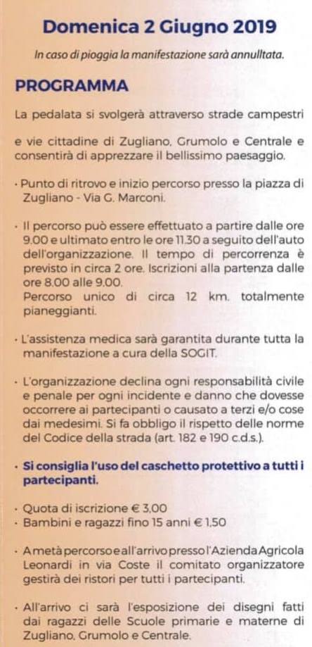 Ritorna Domenica 2 giugno La 25°PEDALATA ECOLOGICA per le strade campestre di Zugliano Partenza Piazza di Zugliano, iscrizioni dalle ore 8.00 alle 9.00.