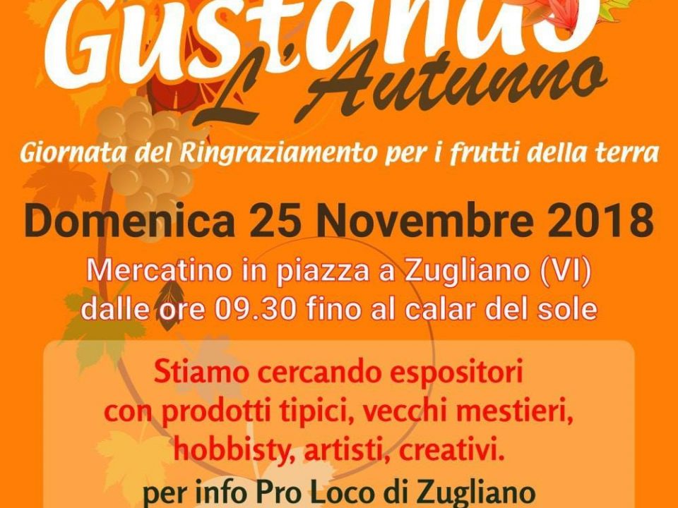 Per Domenica 25 Novembre 2018 stiamo cercando espositori con prodotti tipici, vecchi mestieri, hobbisty, artisti e creativi. Per informazioni prolocozugliano@gmail.com