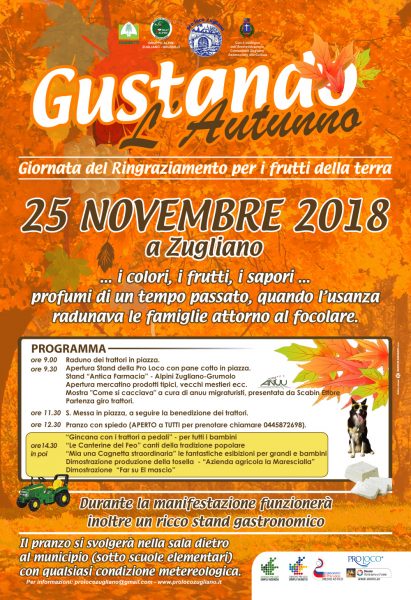 DOMENICA 25 NOVEMBRE 2018 PROGRAMMA ORE 9.00Raduno dei trattori in piazza. ORE 9.30Apertura Stand della Pro Loco con pane cotto in piazza.Stand “Antica Farmacia” – Alpini [..]