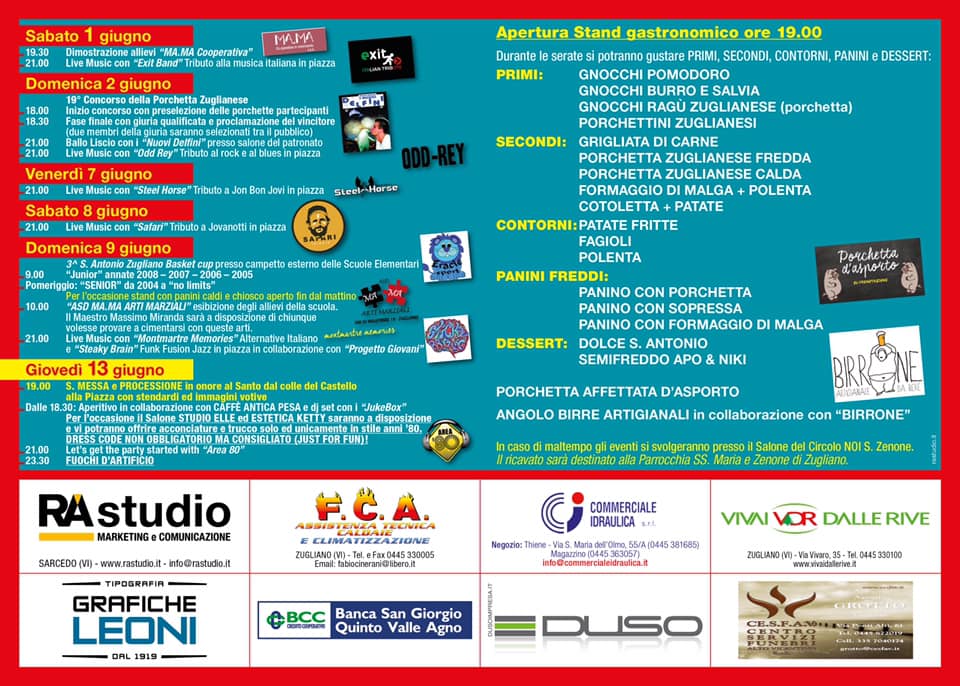 Tutte le informazioni sulla pagina Fecebook della Festa https://www.facebook.com/santantoniozuglianoporchettazuglianese
